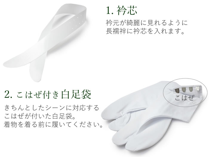 ■セット内容■ 着物スリップ、衿芯、マジックベルト、前板、腰紐2本、こはぜ付き足袋 合計7点 ■どこで使うの?■ 【1】着物を着る前に準備をしましょう。