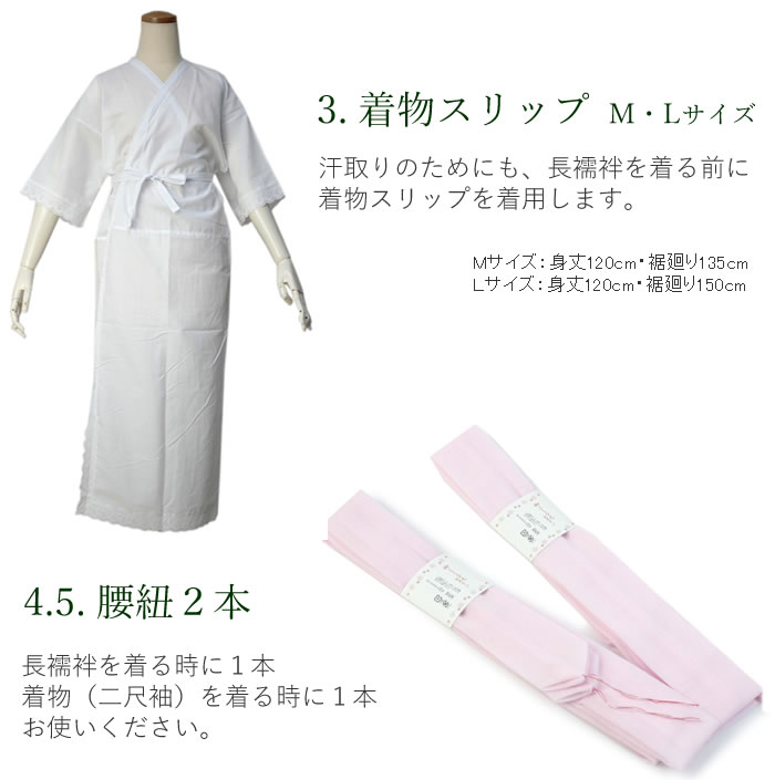 袴 卒業式 女 着付け小物 セット M L レディース スリップ 衿芯 腰紐 白足袋 7点 二尺袖 和装 着物 衣装 購入 販売 新品 セール対象外 送料無料対象外 KZ tbわう