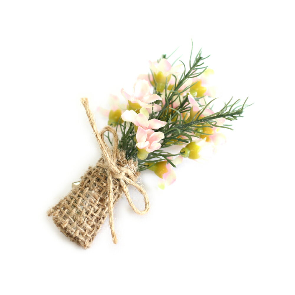 【メール便送料140円】コサージュ/かごバッグ 花飾り c22/ピンク 白(オフホワイト) 安全ピン&クリップ 麻 リボン お花 造花 籠バッグ アクセサリー ブローチ ガーリー系 ハンドメイド 夏 レジャー 夏祭り