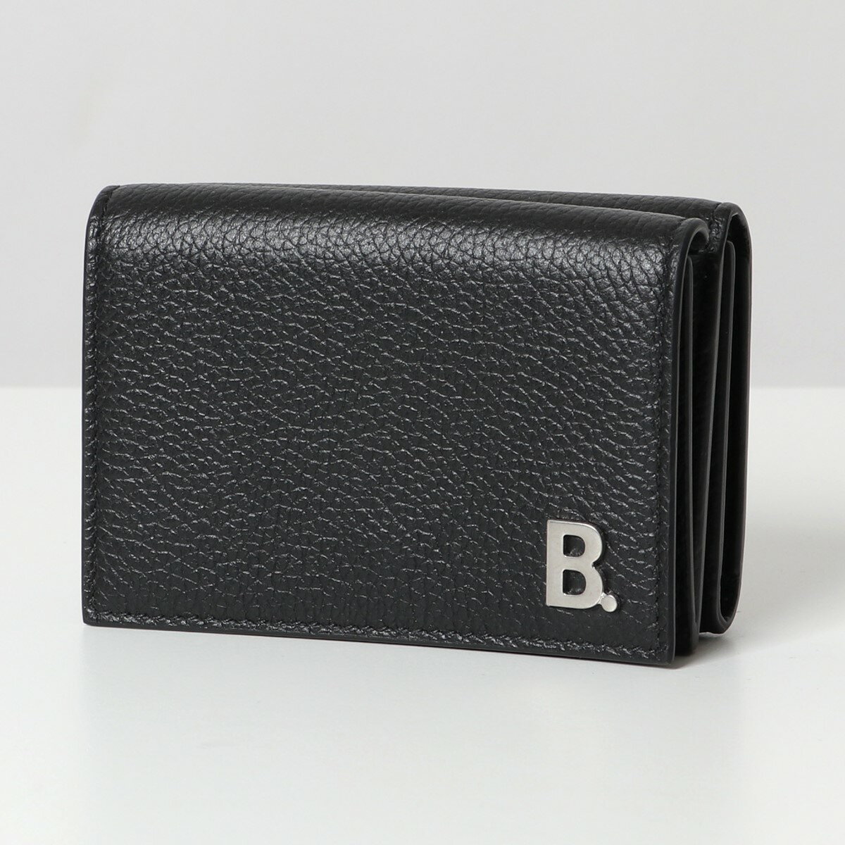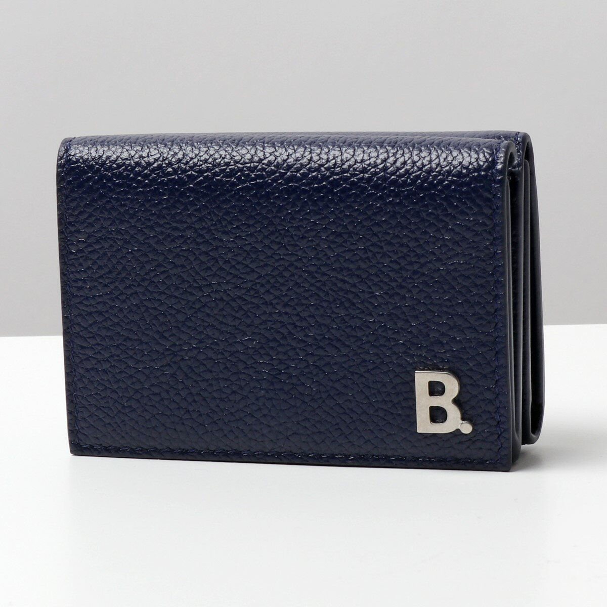 素材 レザー シボ加工な施した上質なレザーにメタルロゴがアクセントになった三つ折り財布です。