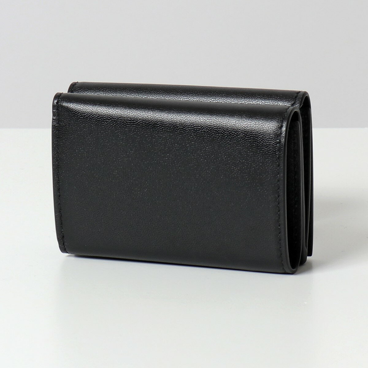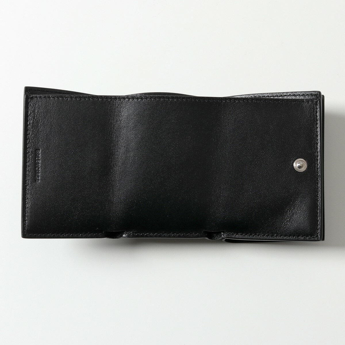 上質なレザーにロゴプリントが際立つ三つ折り財布です。